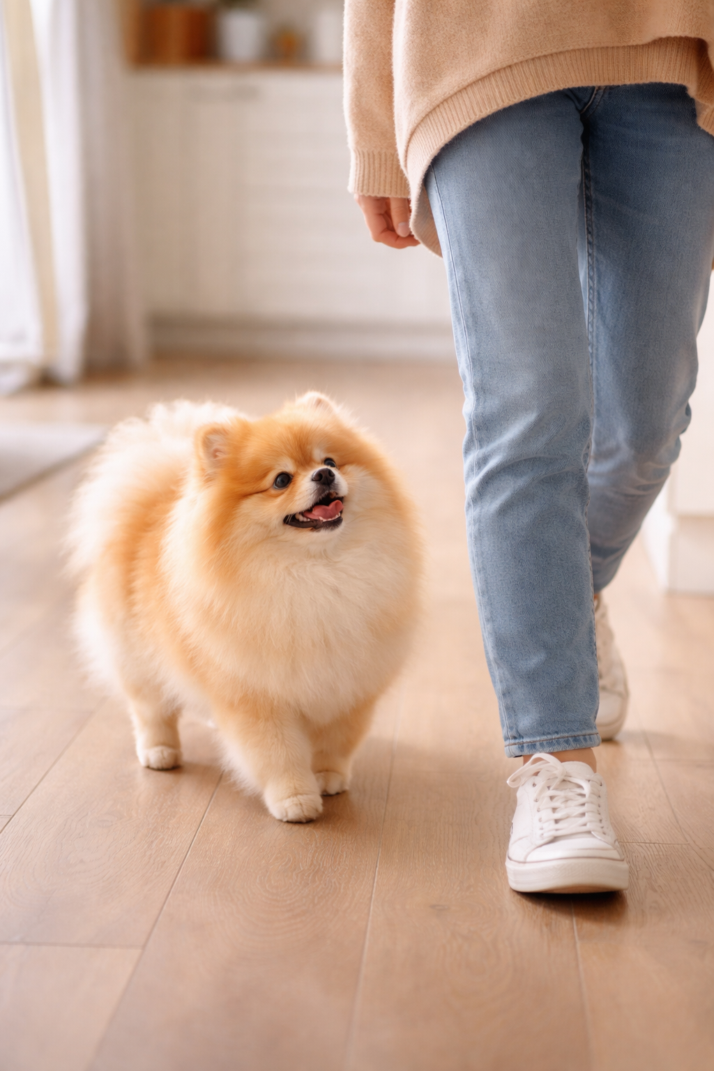 Att följa efter sin ägare kan vara ett sätt för hunden att känna sig trygg.